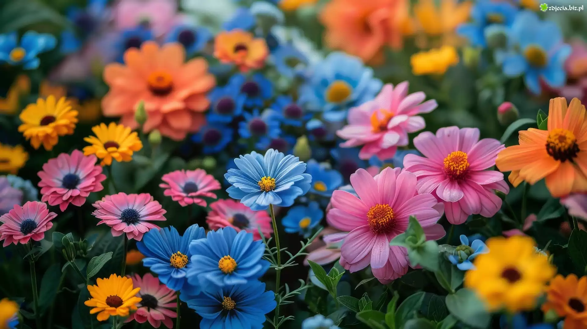Zdjęcie Niebieskie, Różowe, Kolorowe, Kwiaty