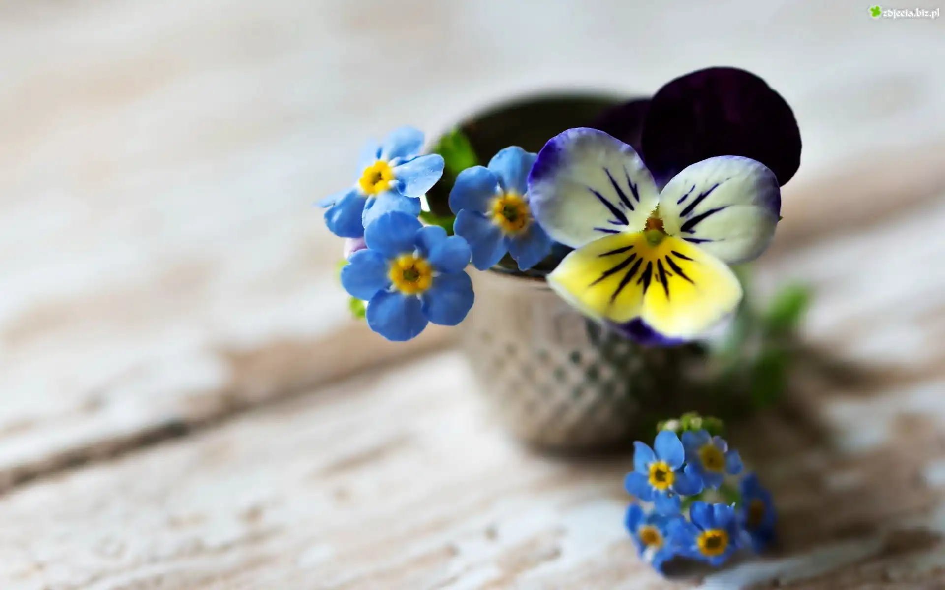Zdjęcie Kwiaty, Bukiet, Bratek, Niezapominajki, Doniczka