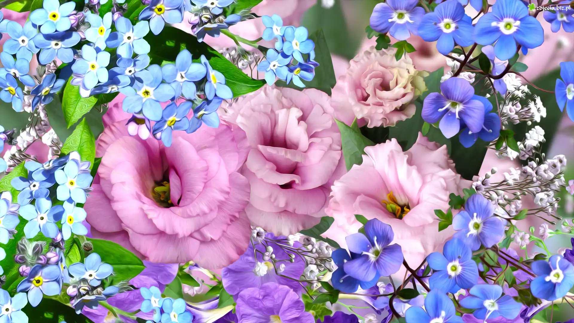 Zdjęcie Kwiaty, Eustoma, Niezapominajki, Grafika