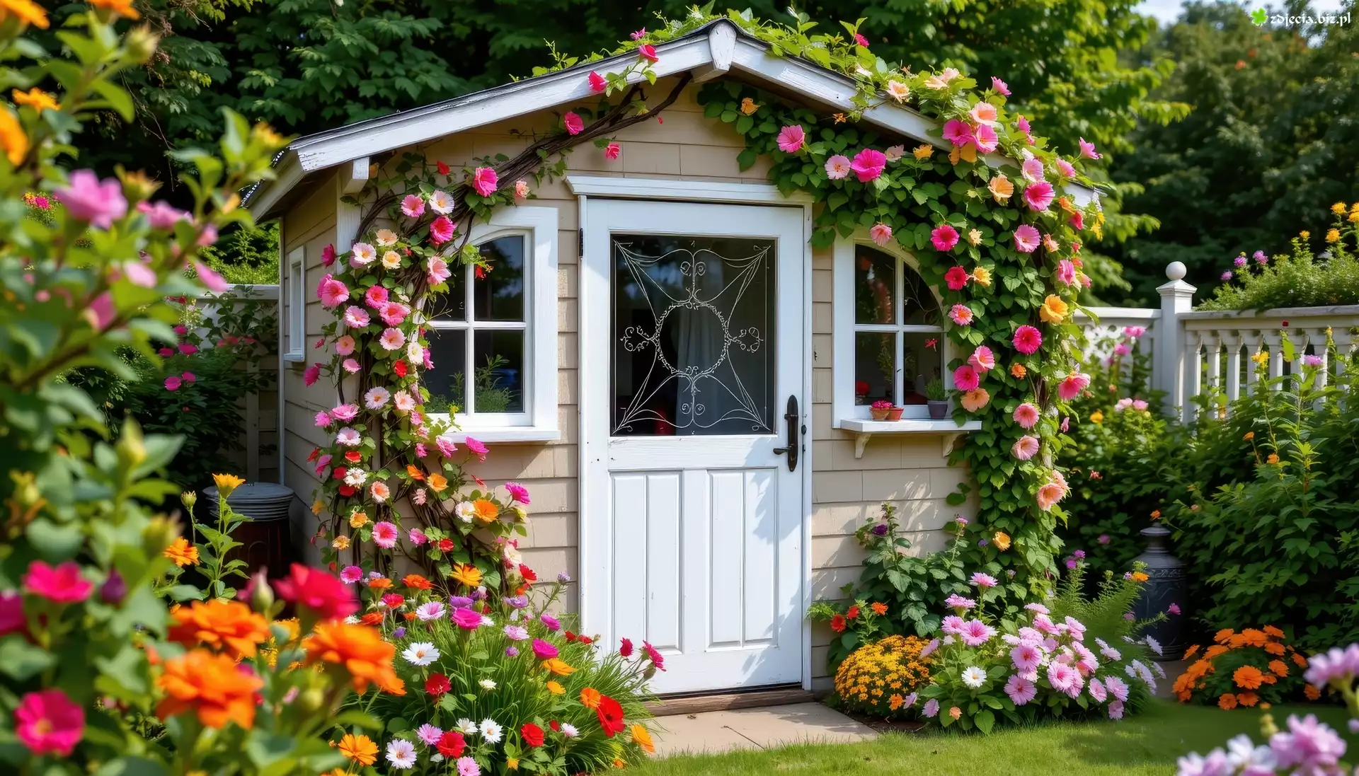 Zdjęcie Domek, Kwiaty, Ogród, Grafika AI