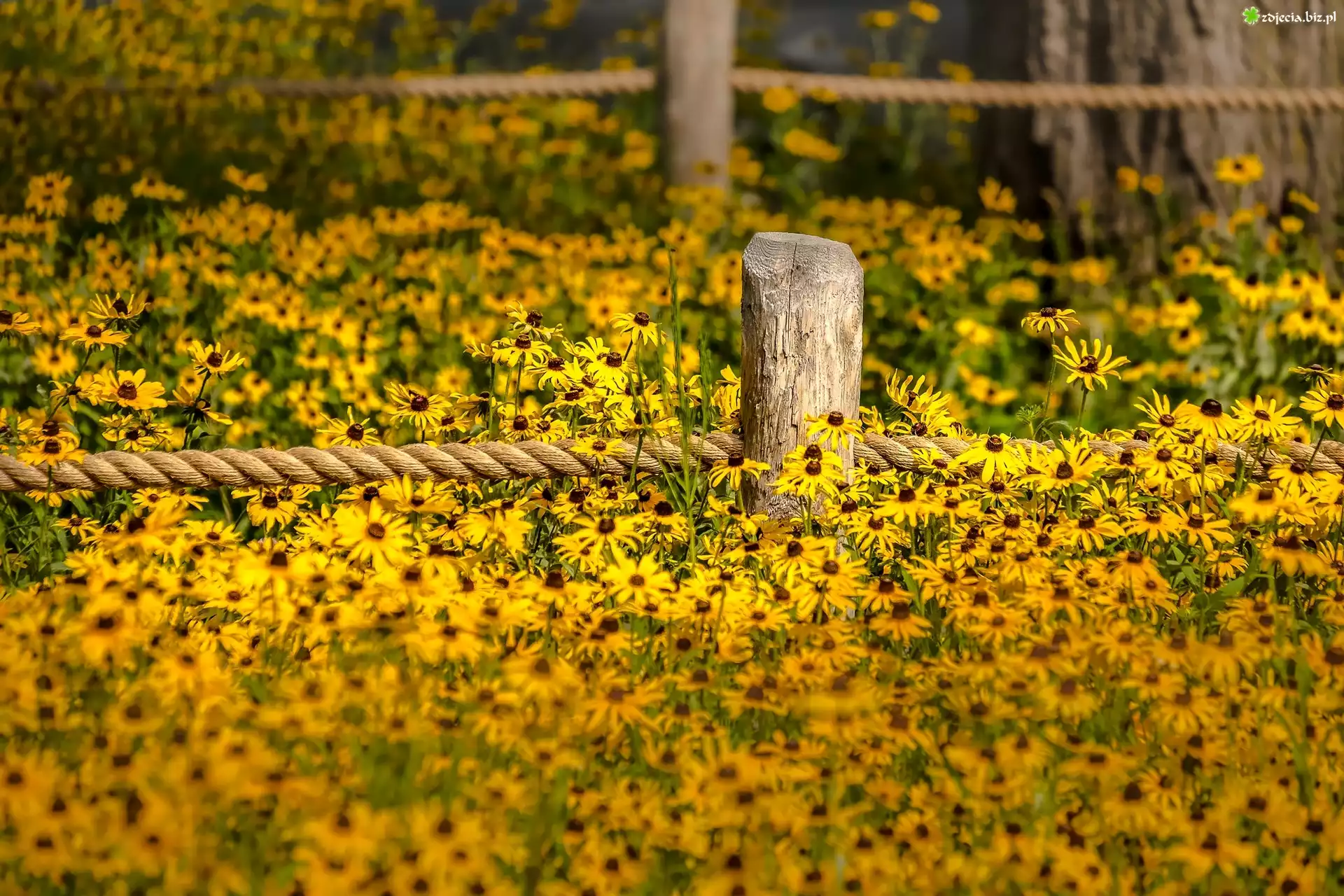 Zdjęcie Kwiaty, Rudbekia, Ogrodzenie, Sznur