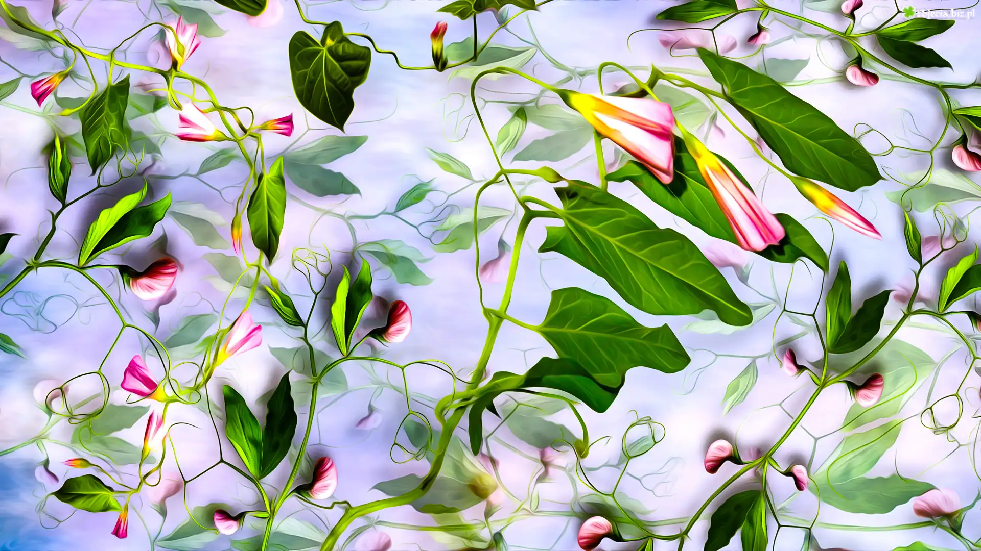 Zdjęcie, Kwiaty, Powój, Groszek pachnący, Grafika