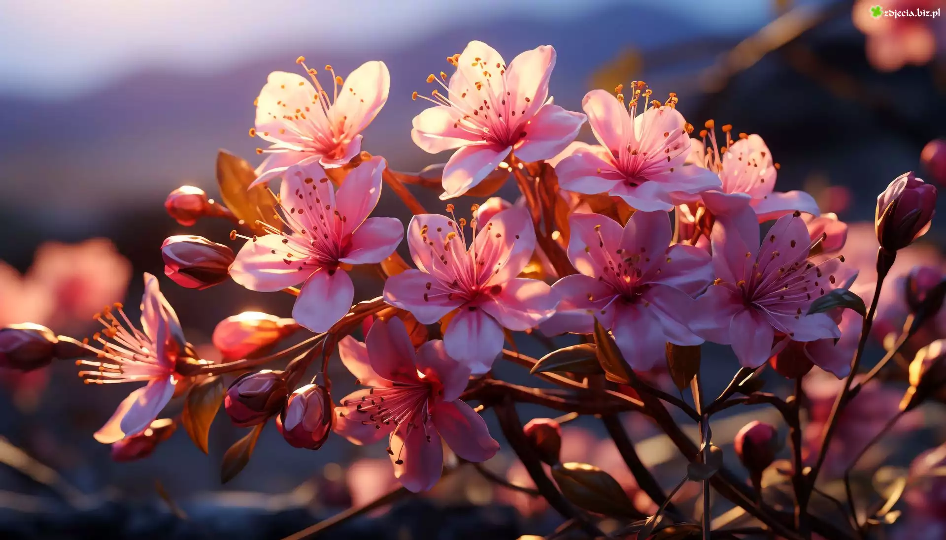 Zdjęcie Drzewo owocowe, Gałązki, Kwiaty, Różowe, Pąki