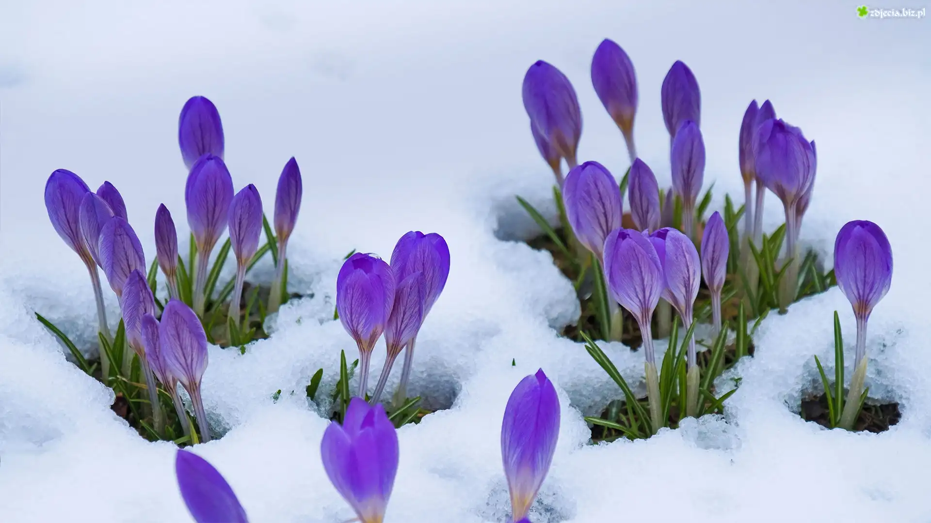 Zdjęcie Kwiaty, Fioletowe, Krokusy, Pąki, Śnieg