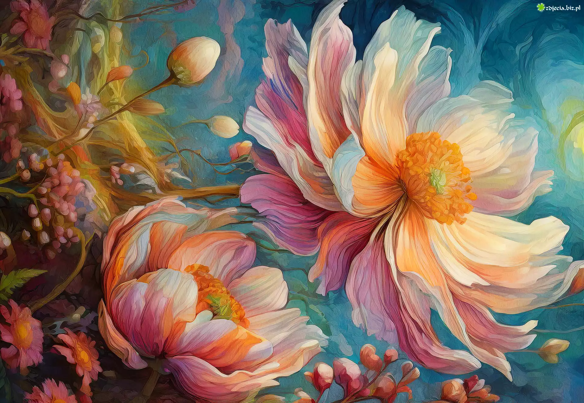 Zdjęcie Malarstwo, Obraz, Kolorowe, Kwiaty, Rozkwitnięte, Piwonie