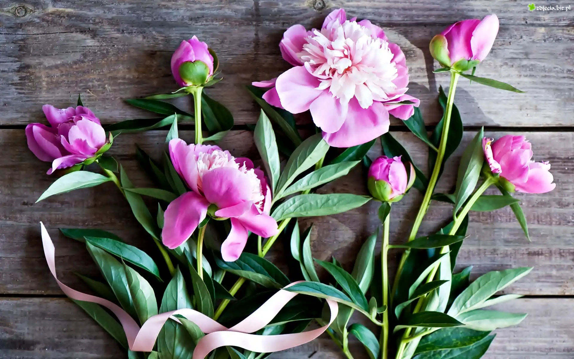 Zdjęcie Kwiaty, Pąki, Piwonie, Wstązka