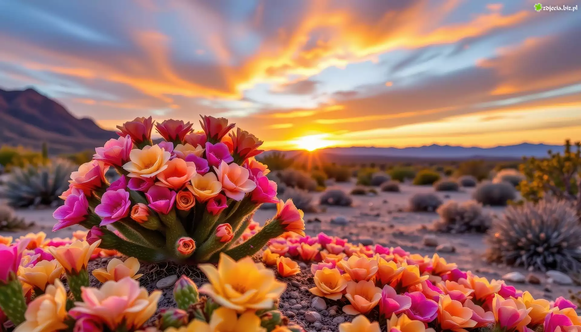 Zdjęcie Kaktus, Kwiaty, Promienie słońca, AI