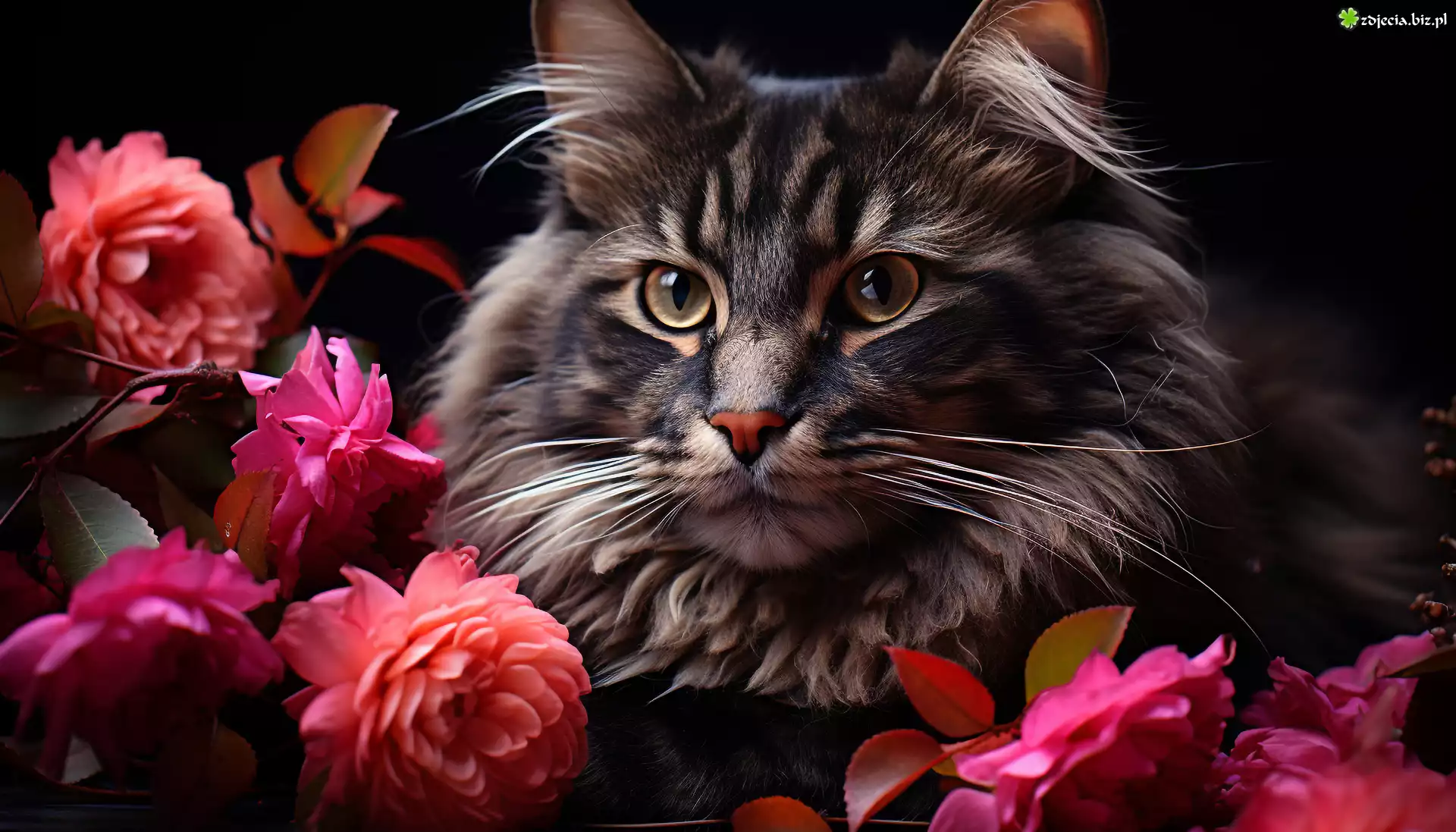 Zdjęcie Puszysty, Kot, Pyszczek, Kwiaty