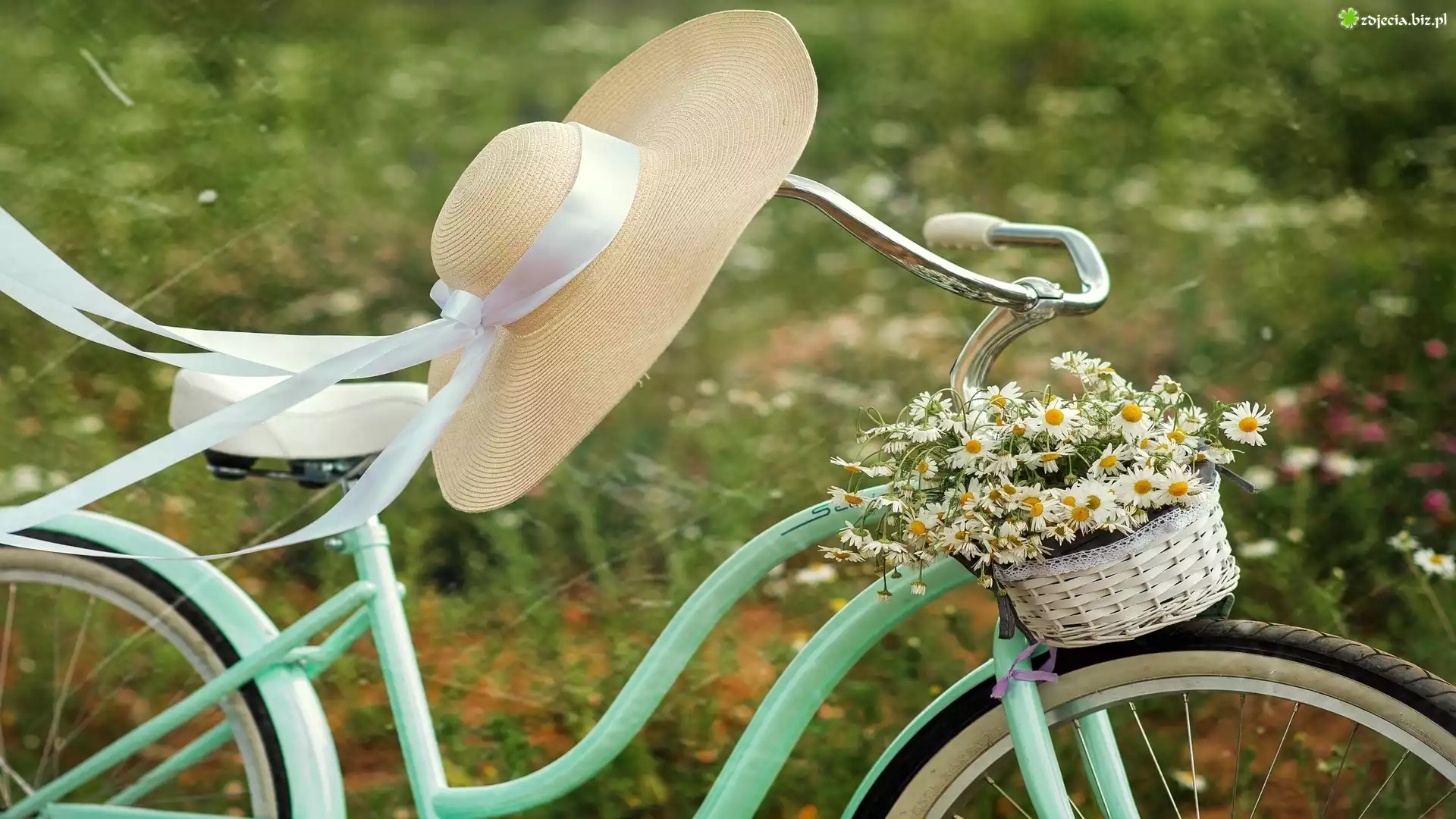 Zdjęcie Rower, Kapelusz, Koszyk, Kwiaty