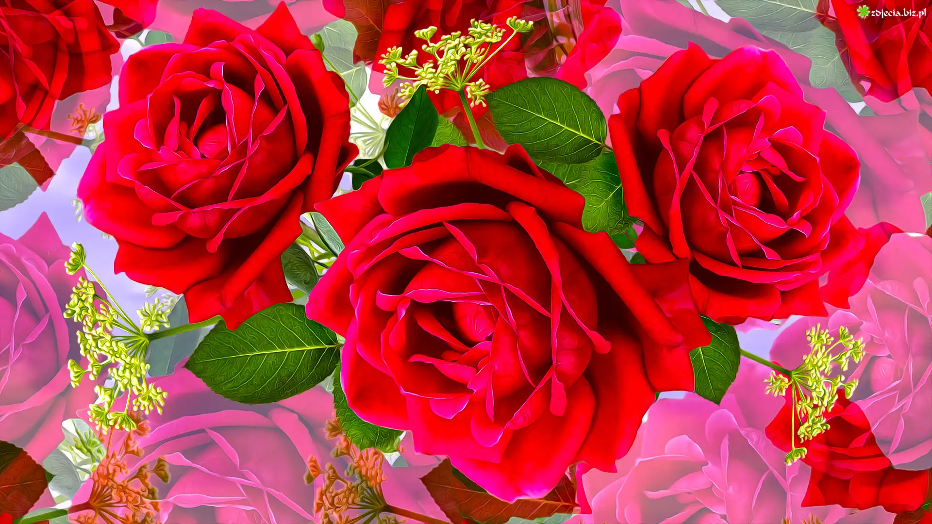 Zdjęcie Kwiaty, Czerwone, Rozwinięte, Róże, Grafika