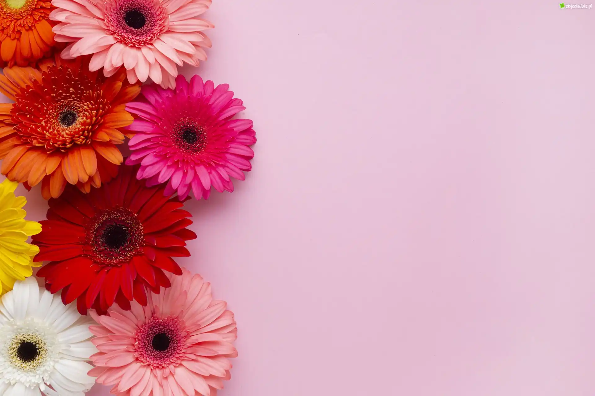 Zdjęcie, Kwiaty, Kolorowe, Gerbery, Różowe, Tło