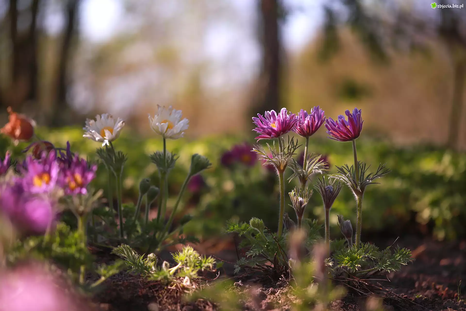 Zdjęcie, Sasanki, Białe, Fioletowe, Kwiaty