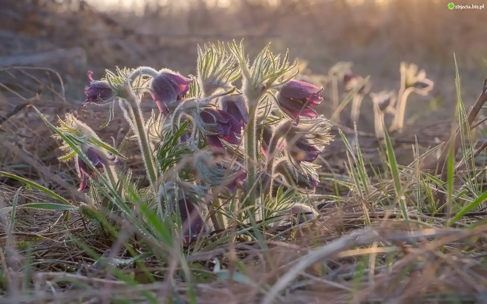 Zdjęcie Kwiaty, Kępka, Sasanki, Trawa