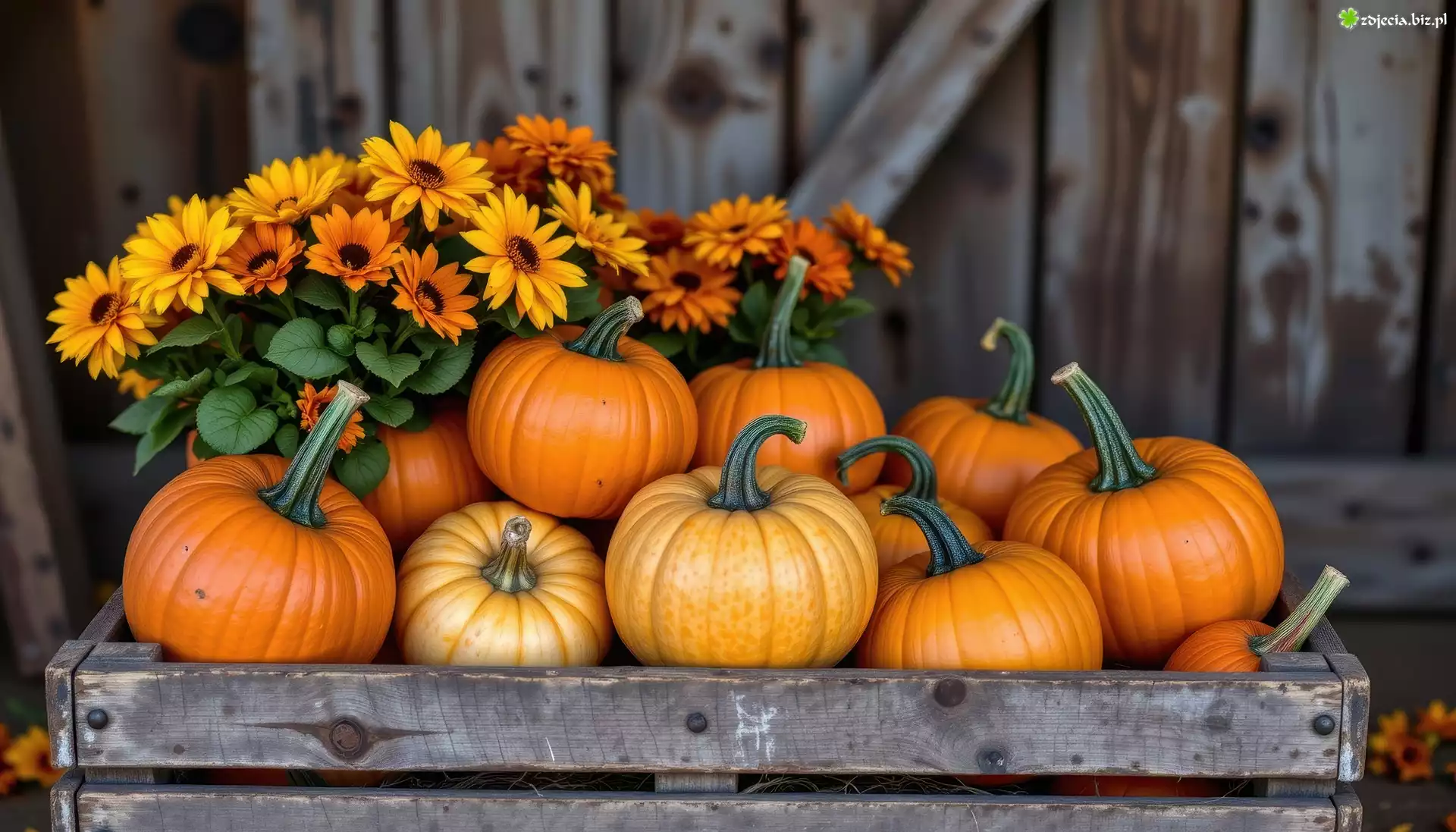 Zdjęcie Dynie, Kwiaty, Skrzynka, Grafika AI