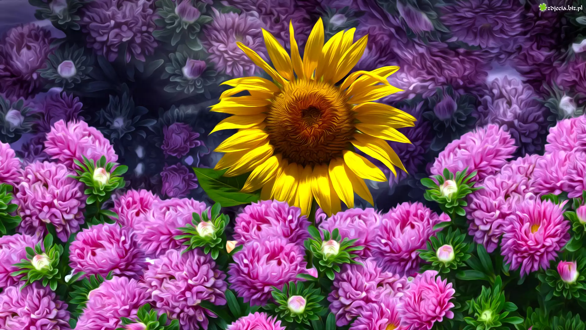 Zdjęcie Kwiaty, Astry, Słonecznik, Grafika