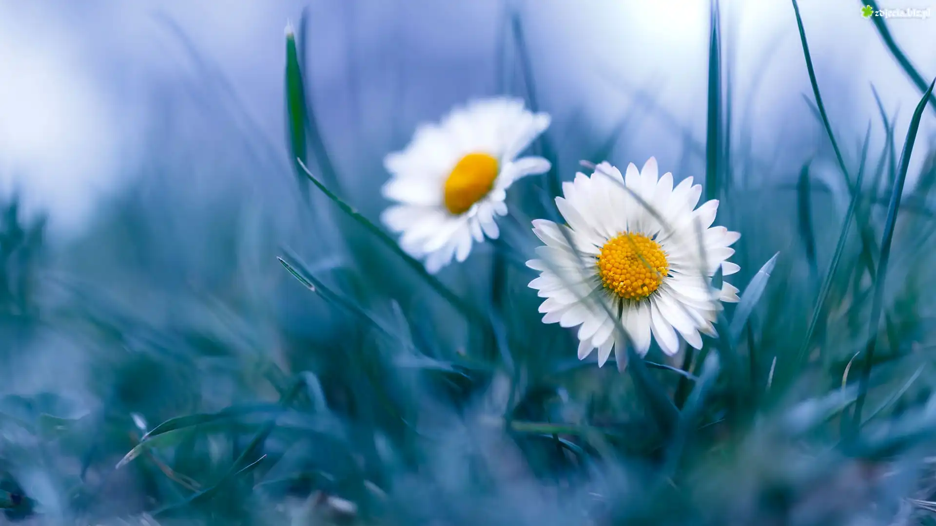 Zdjęcie Kwiaty, Dwie, Stokrotki, Trawa