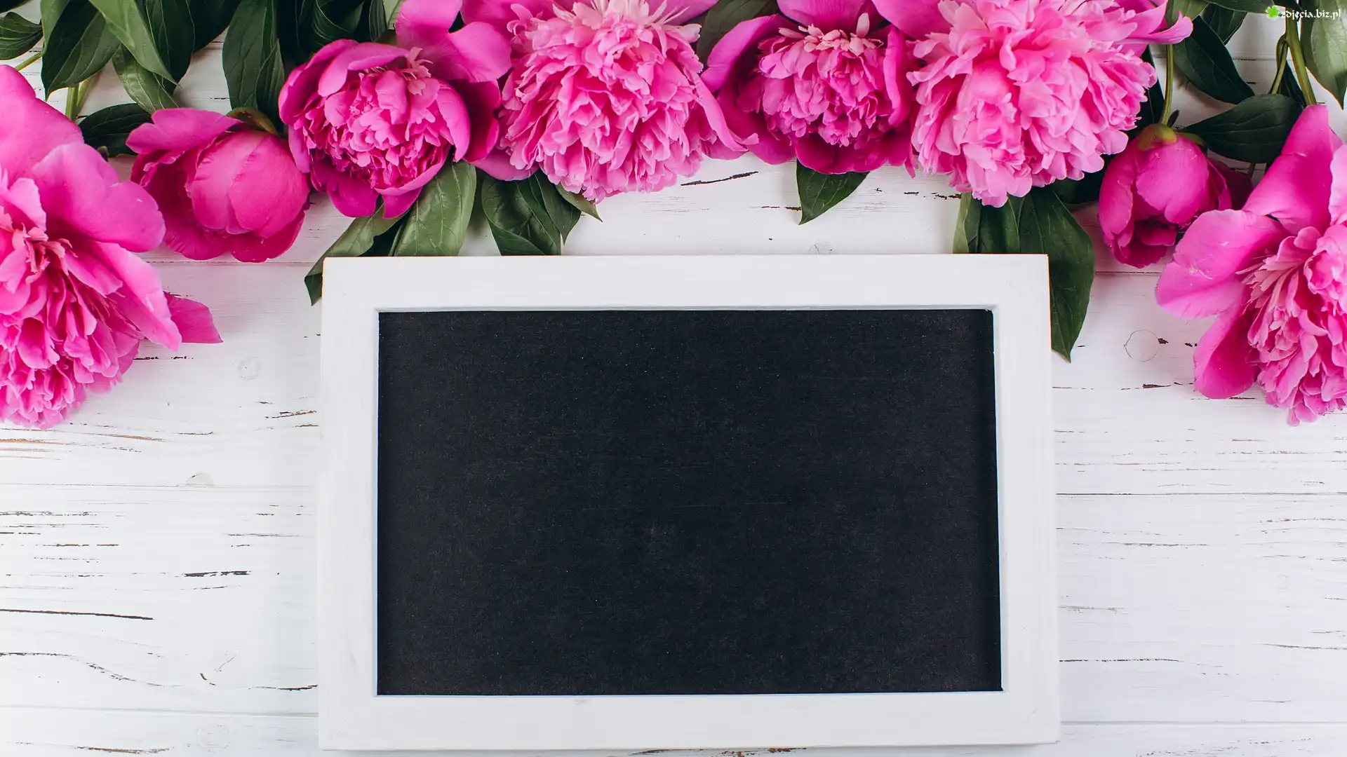 Zdjęcie Kwiaty, Piwonie, Liście, Tabliczka, Deski