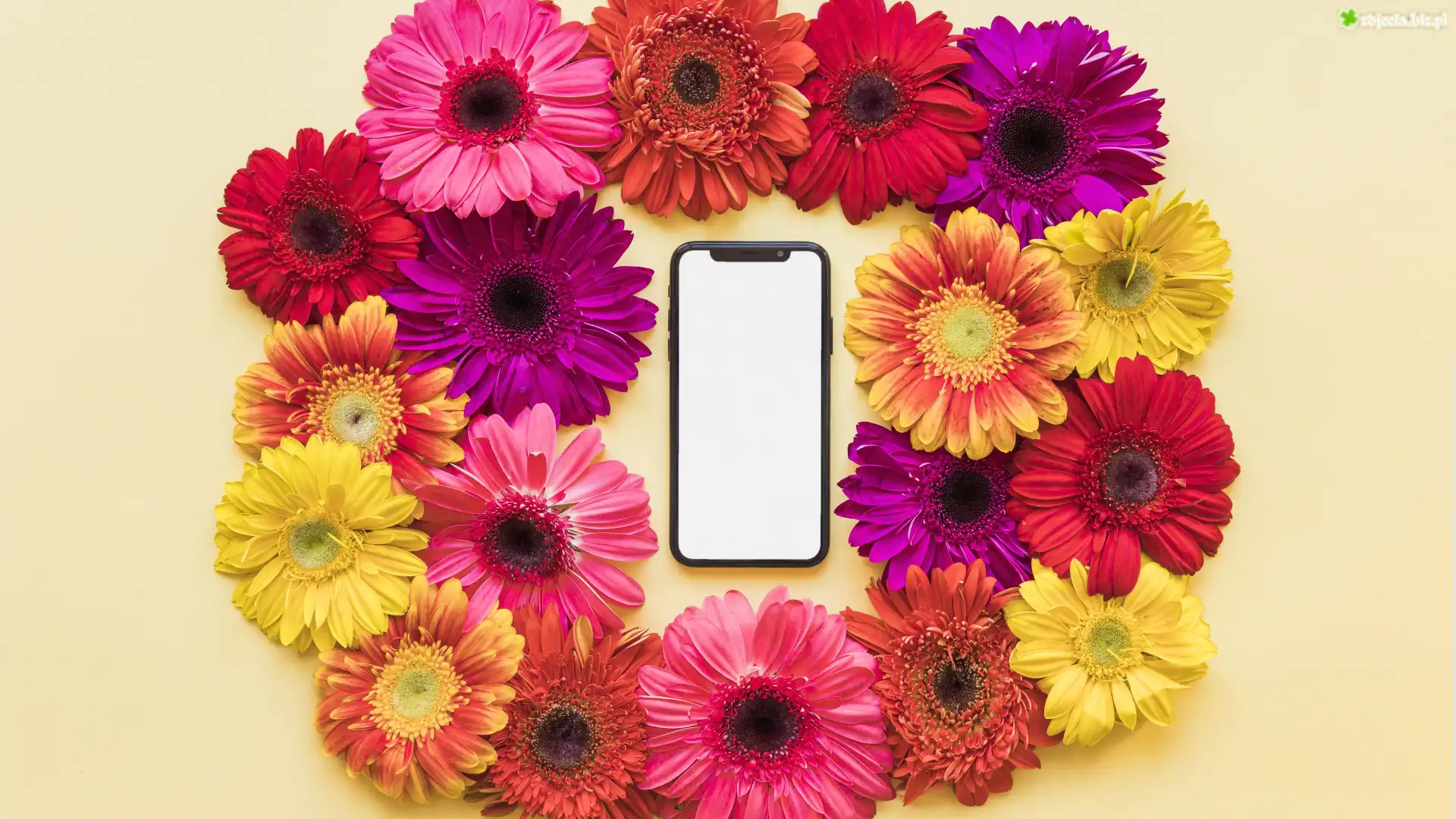 Zdjęcie Kwiaty, Kolorowe, Gerbery, Telefon komórkowy