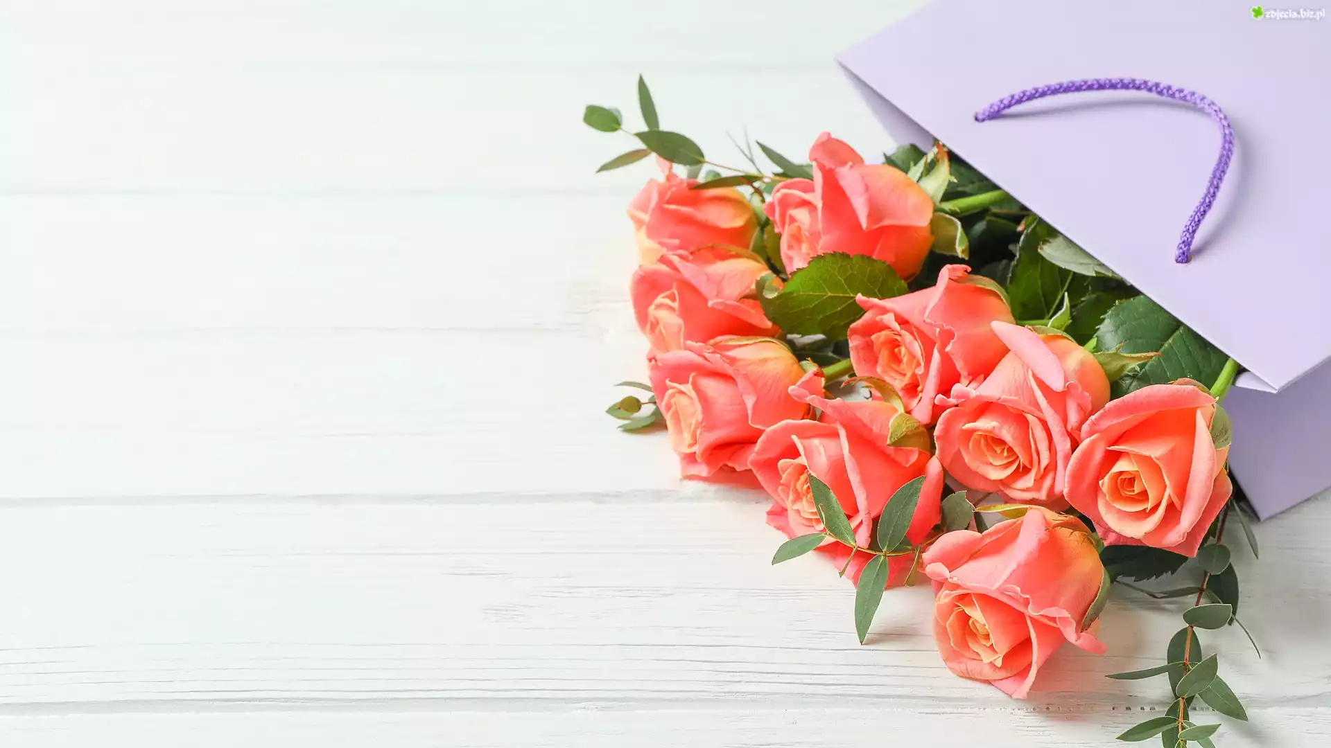 Zdjęcie Kwiaty, Róże, Liliowa, Papierowa, Torebka, Deski