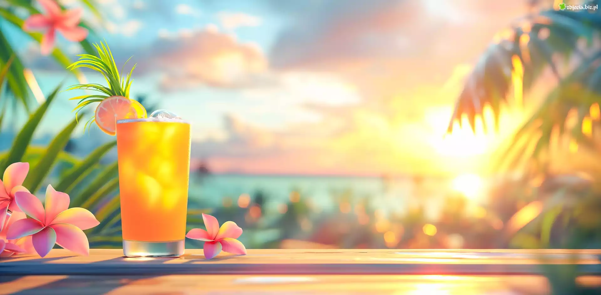 Zdjęcie Koktajl, Kwiaty, Tropiki, Słońce, Grafika