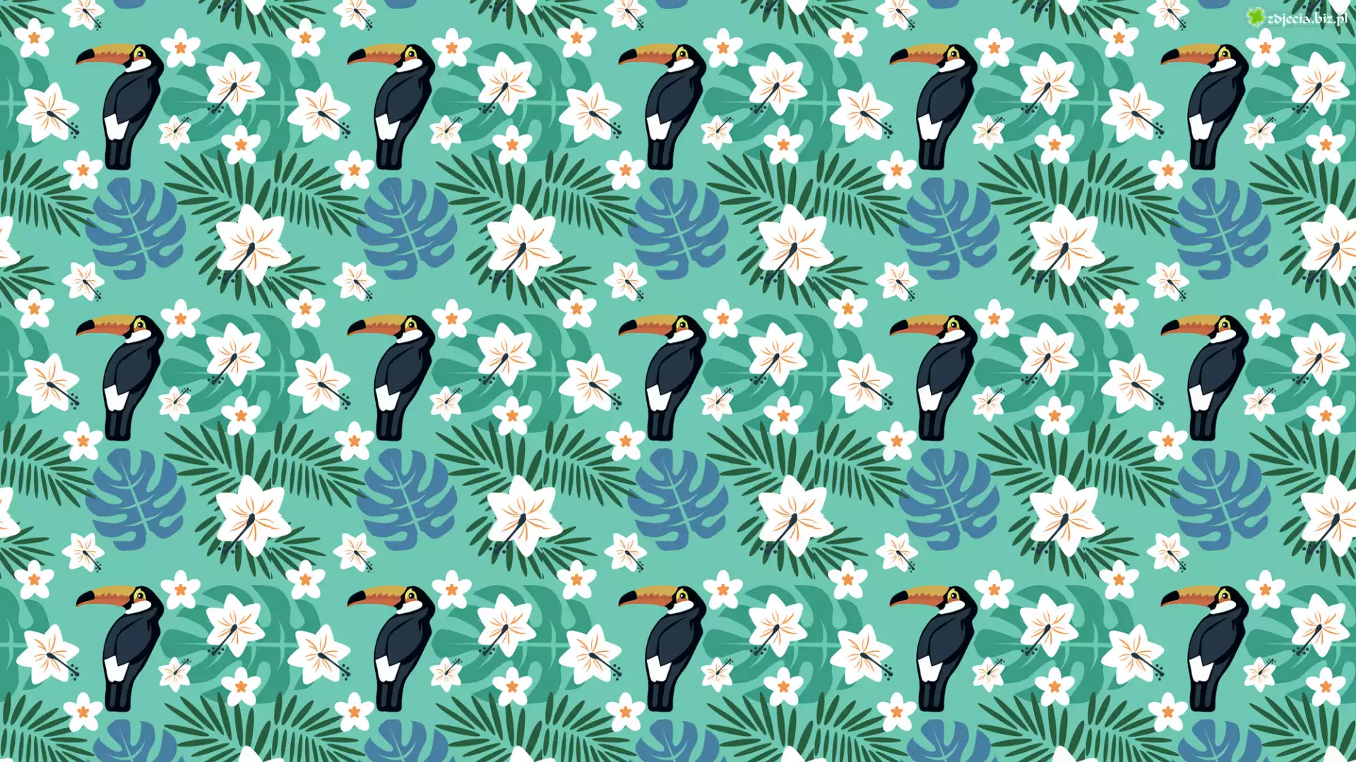 Zdjęcie Kwiaty, Ptaki, Tukany, Tekstura