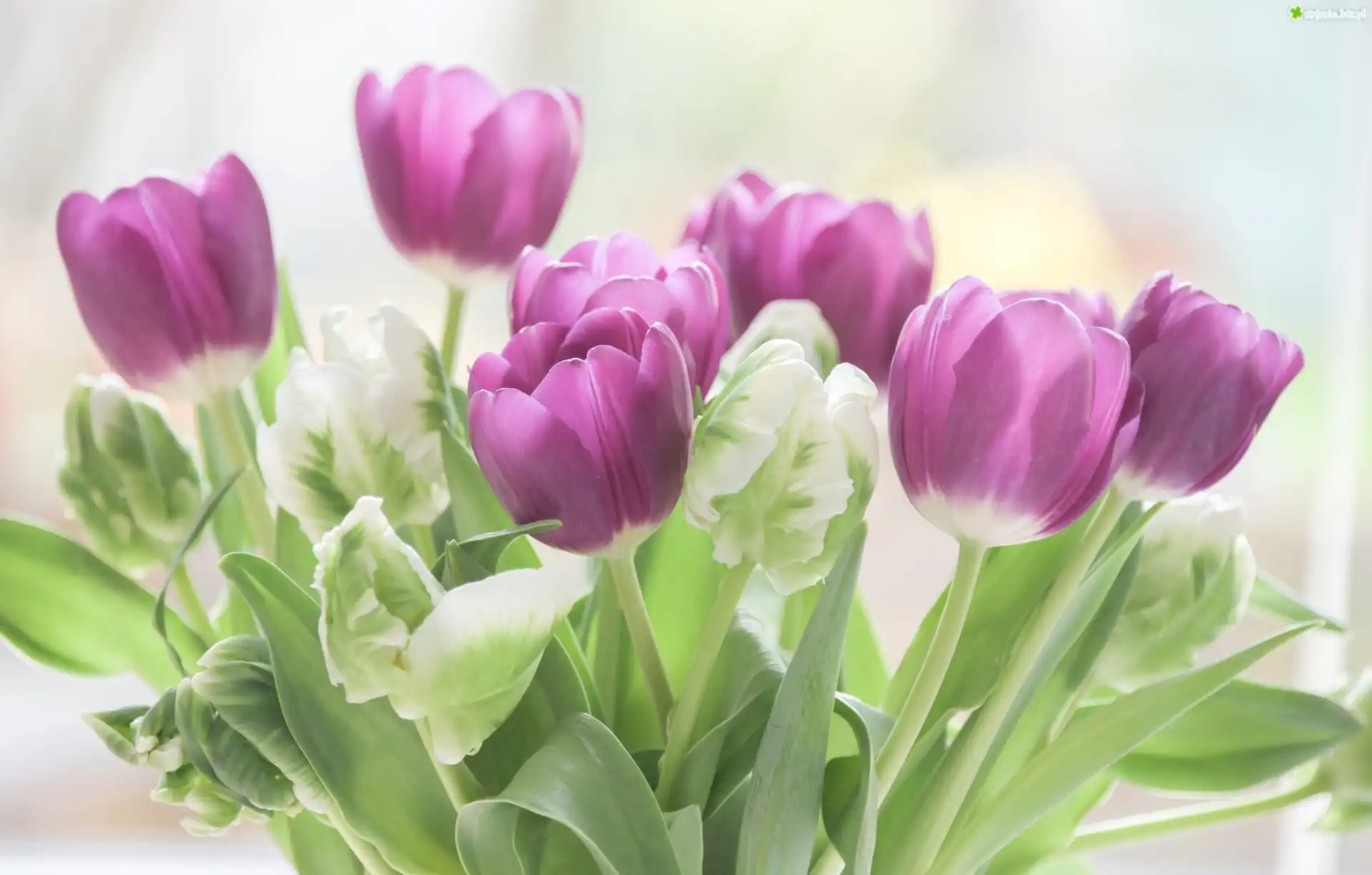 Zdjęcie Kwiaty, Liliowe, Białe, Tulipany, Rozmycie