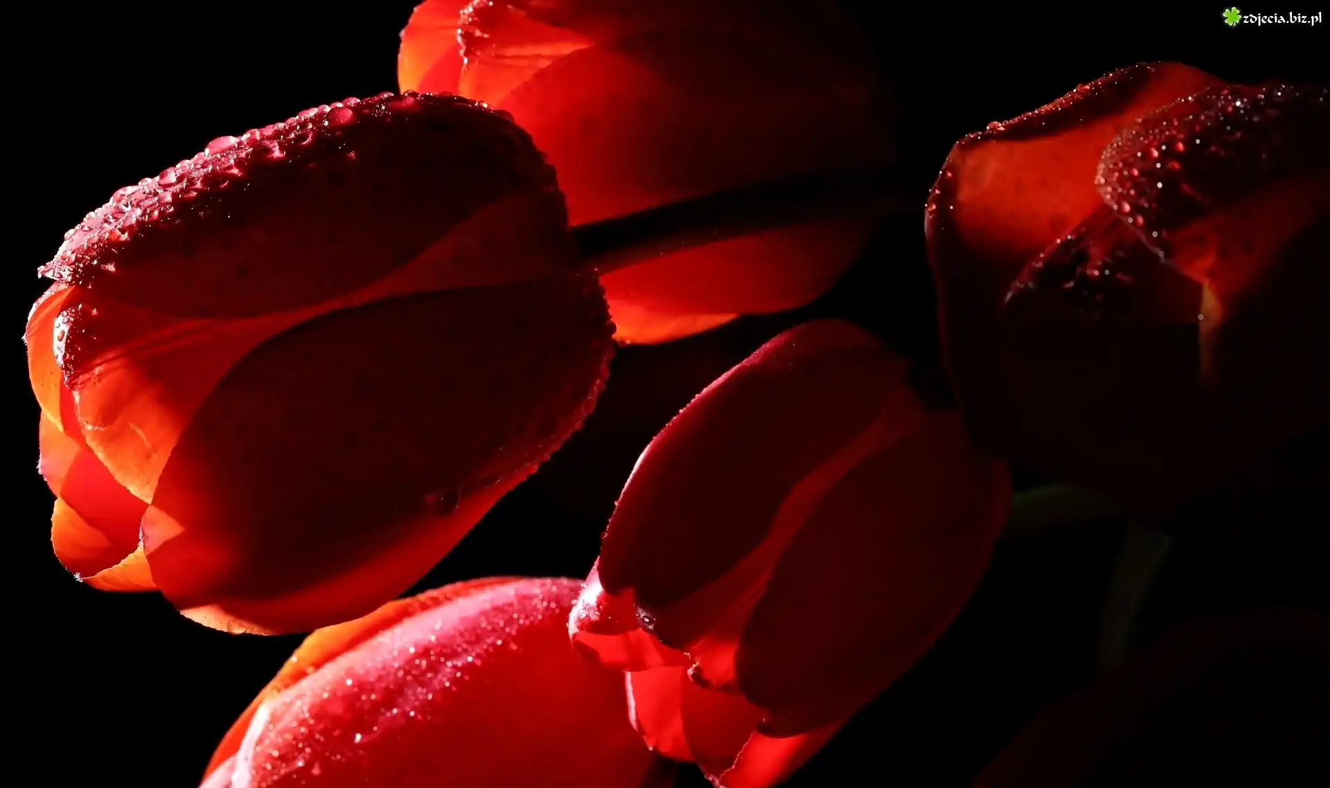 Zdjęcie, Kwiaty, Czerwone, Tulipany, Krople