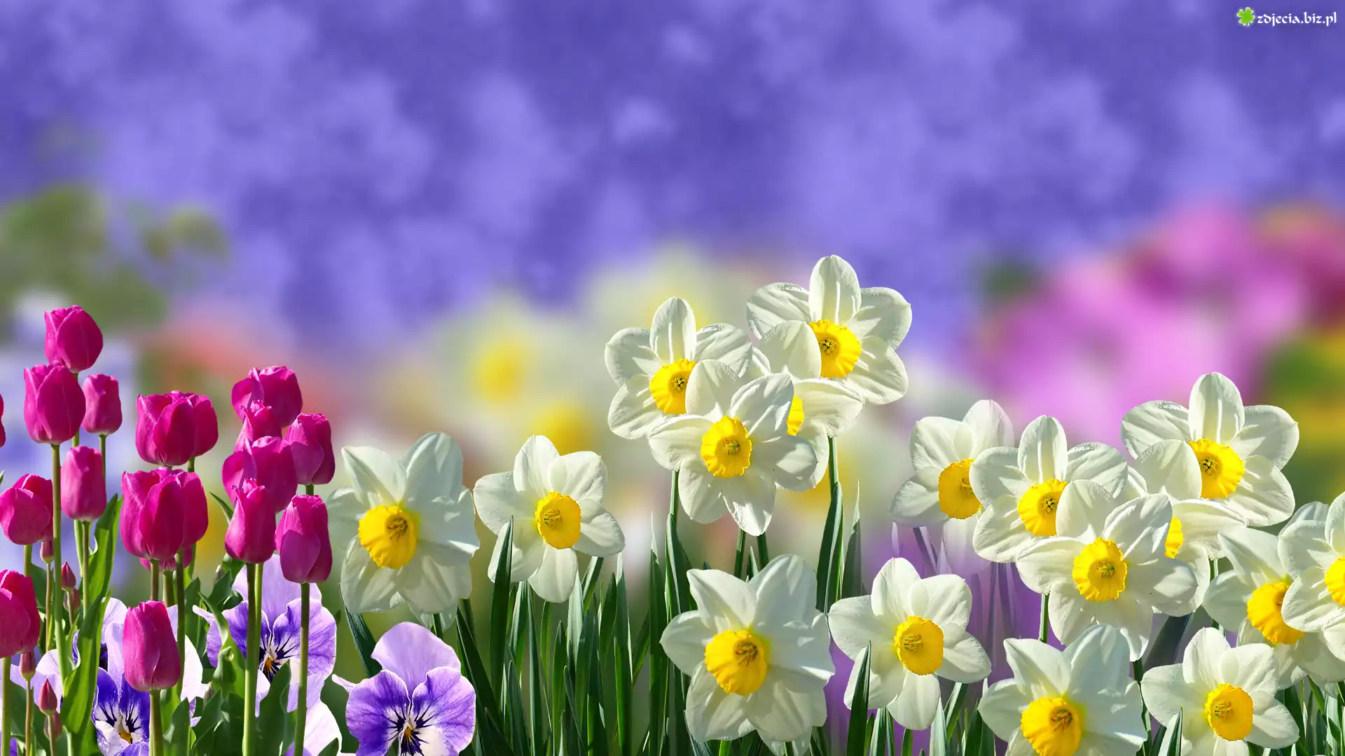 Zdjęcie Kwiaty, Narcyzy, Tulipany, Bratki