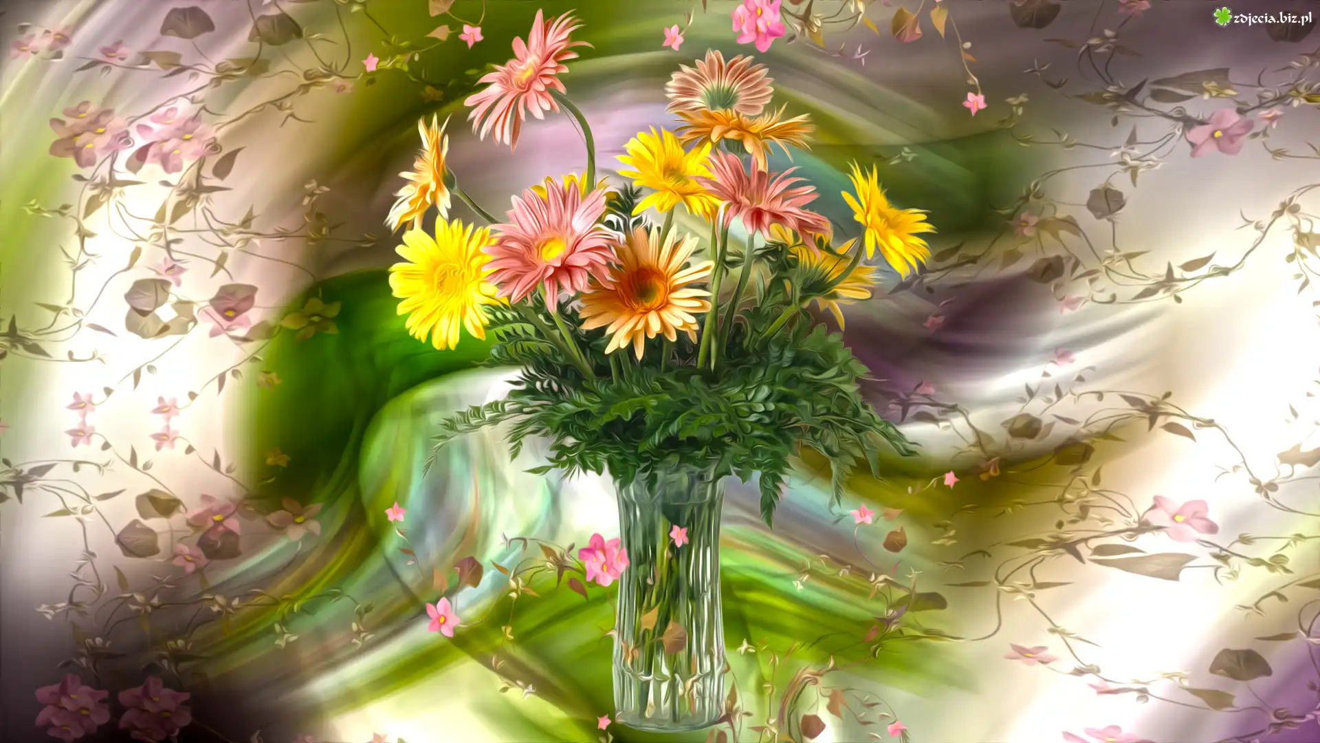 Zdjęcie Kwiaty, Gerbery, Wazon, Grafika