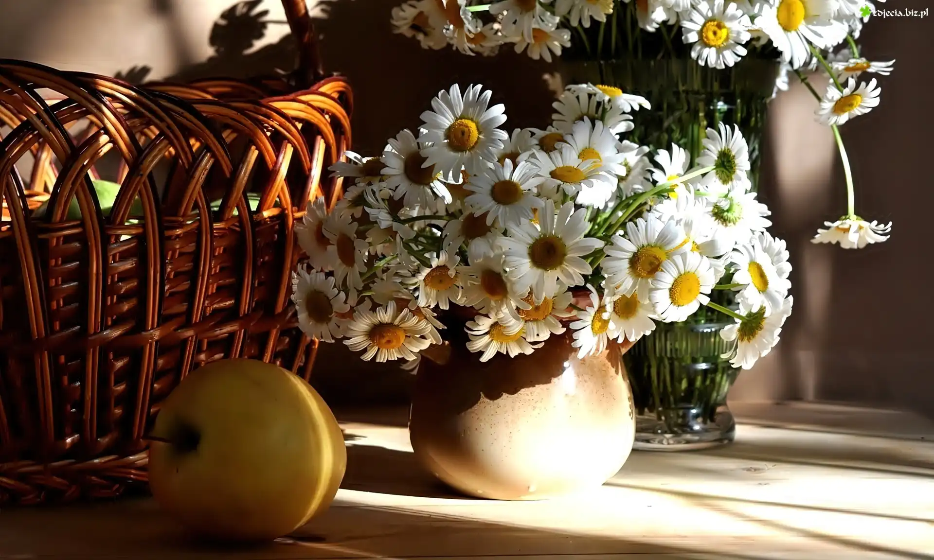 Zdjęcie Kwiaty, Kosz, Wazon, Jabłko