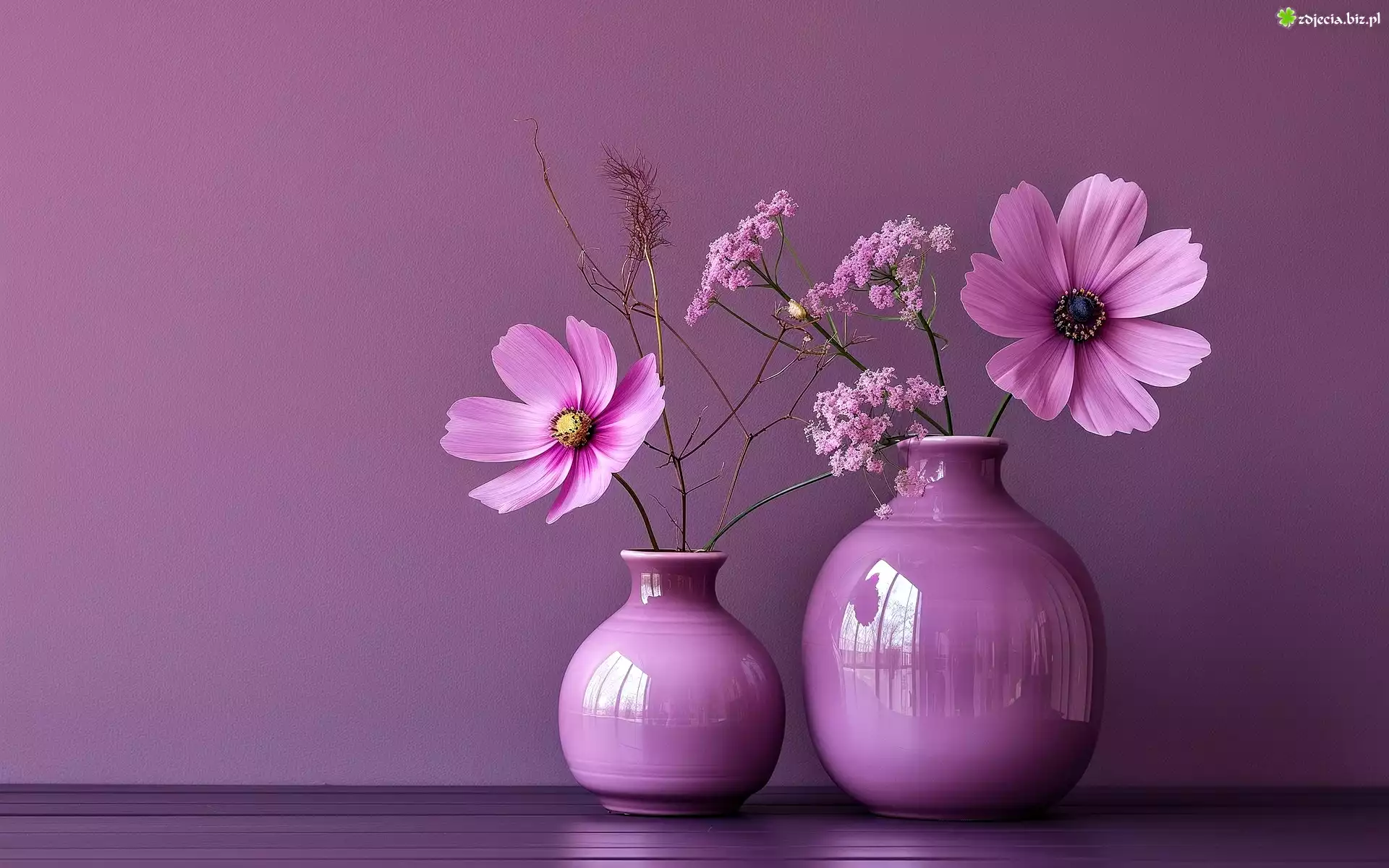 Zdjęcie Kosmea, Kwiaty, Wazony, Fiolet, Kompozycja