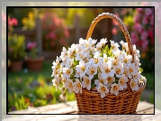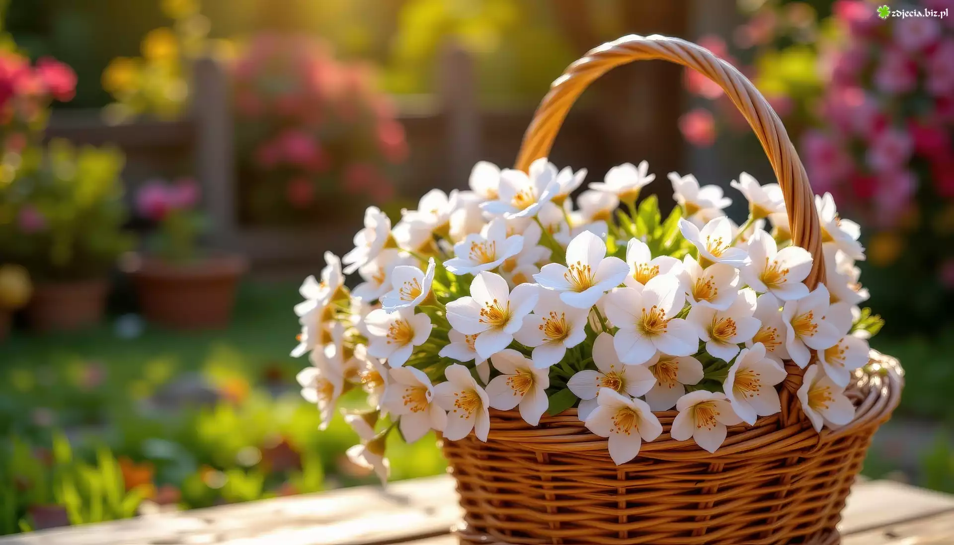 Zdjęcie Białe, Kwiaty, Wiklinowy, Koszyk, AI