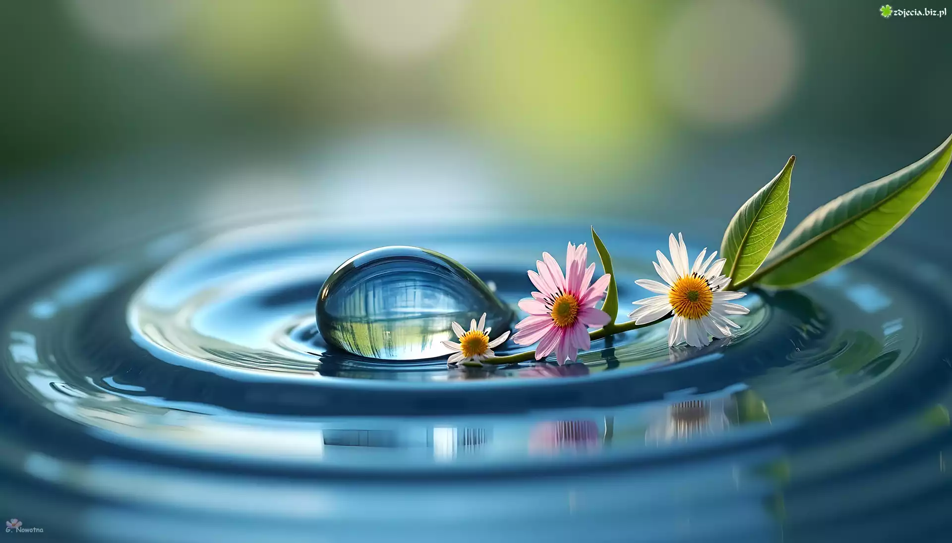 Zdjęcie Kropla, Kwiaty, Woda, Grafika AI