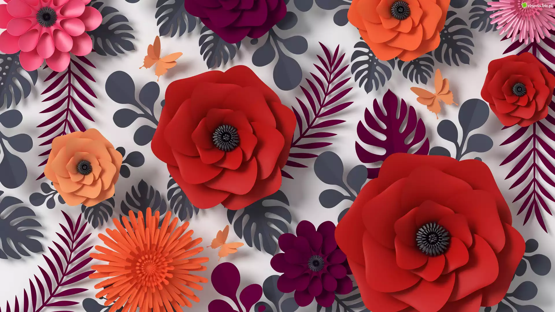 Zdjęcie Kwiaty, Motyle, Wycinanki, Papierowe