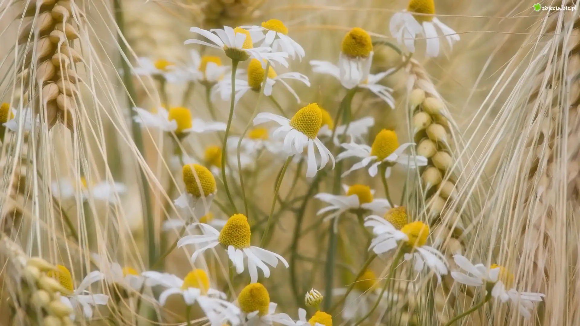 Zdjęcie Kwiaty, Rumianki, Zboże
