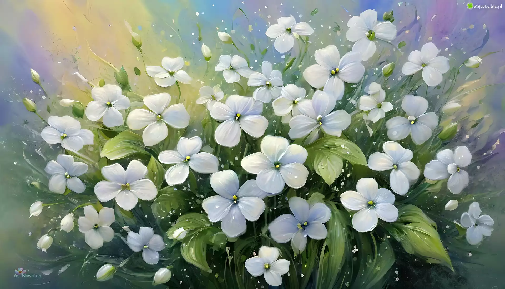 Zdjęcie Białe, Kwiaty, Zielone, Liście, Grafika