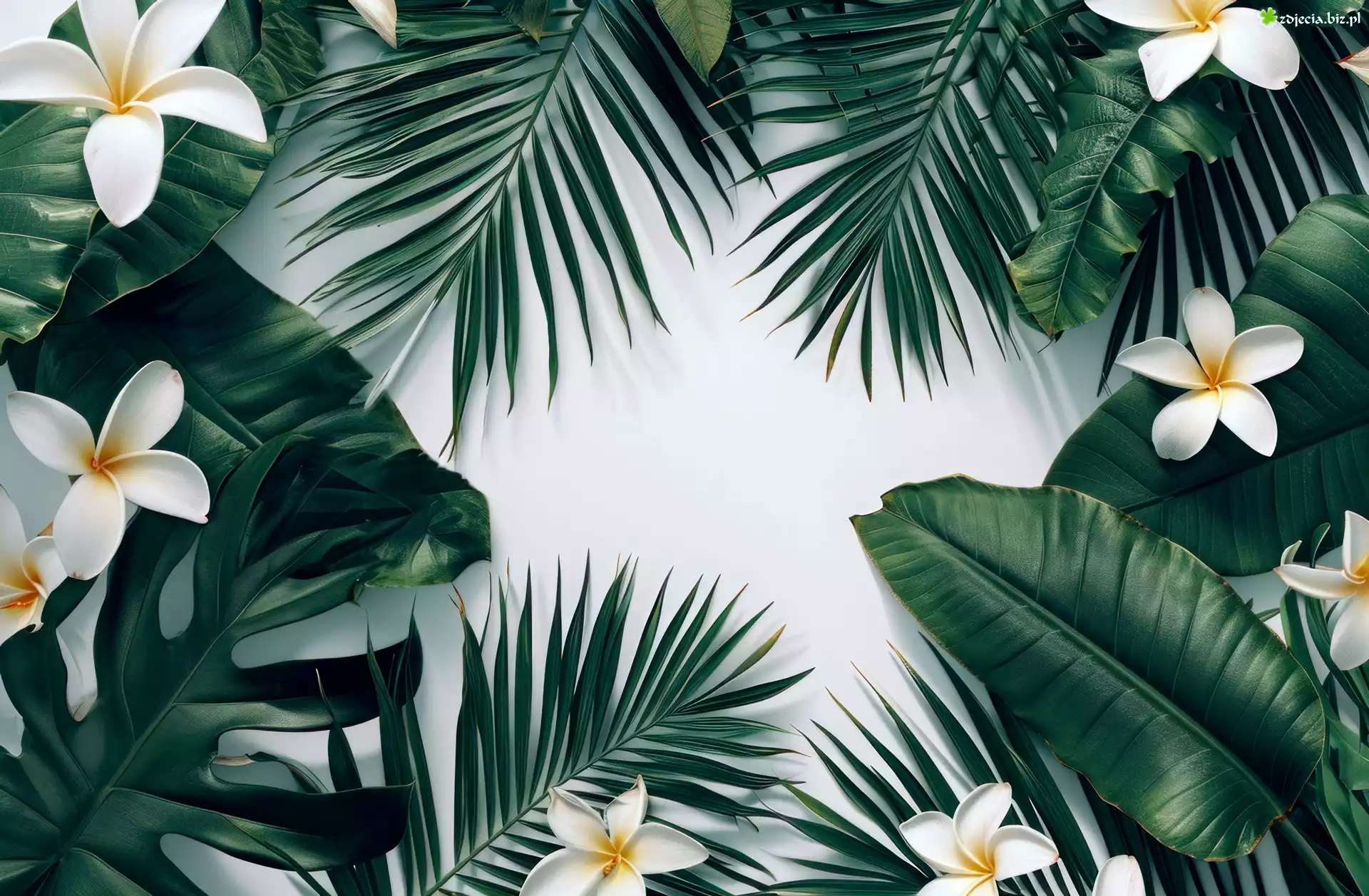 Zdjęcie Plumeria, Kwiaty, Zielone, Liście, Grafika