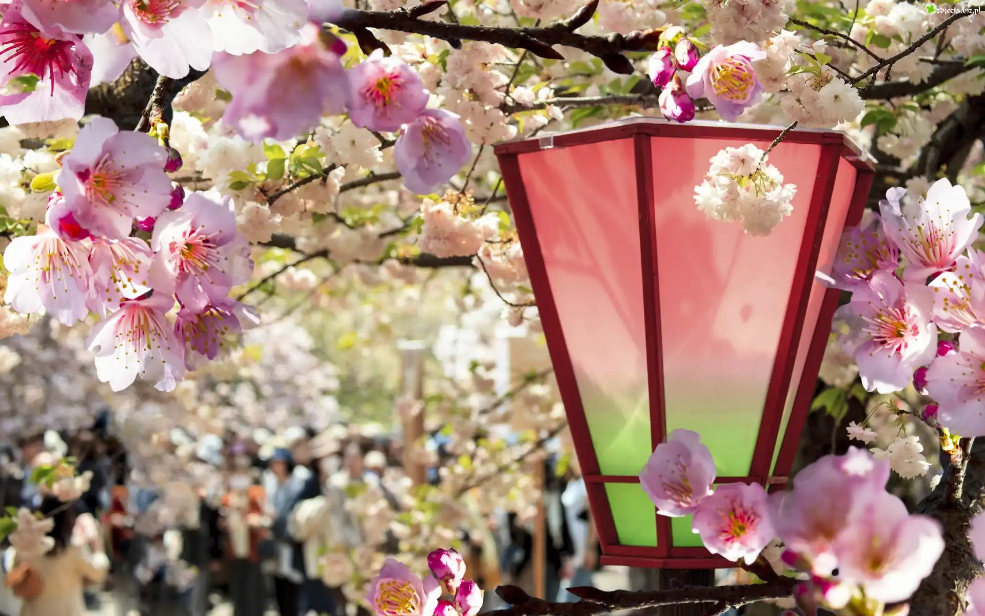 Zdjęcie Kwitnące, Drzewa, Latarnia, Park, Wiosna