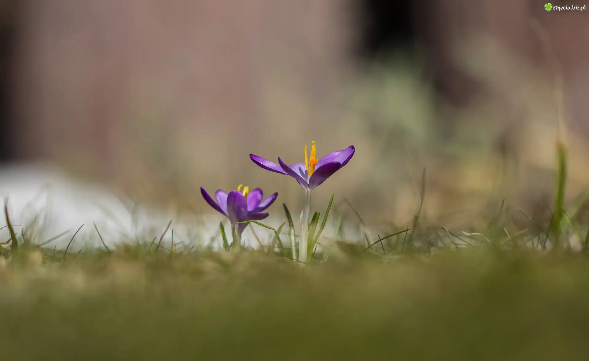Zdjęcie Kwitnące, Krokusy, Rozmyte tło