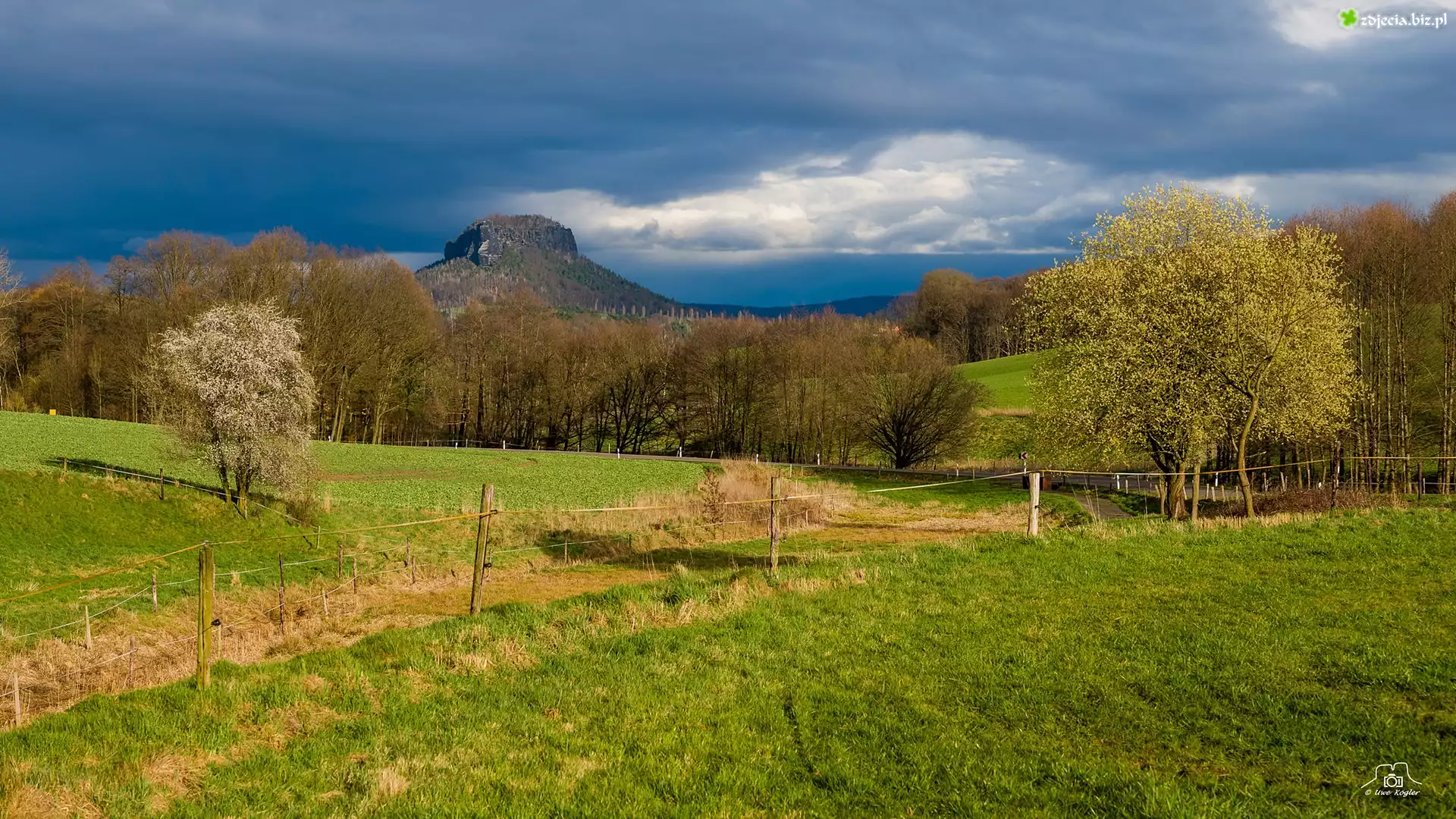 Zdjęcie Góry, Lilienstein, Drzewa, Łąka, Ogrodzenie, Saksonia, Niemcy