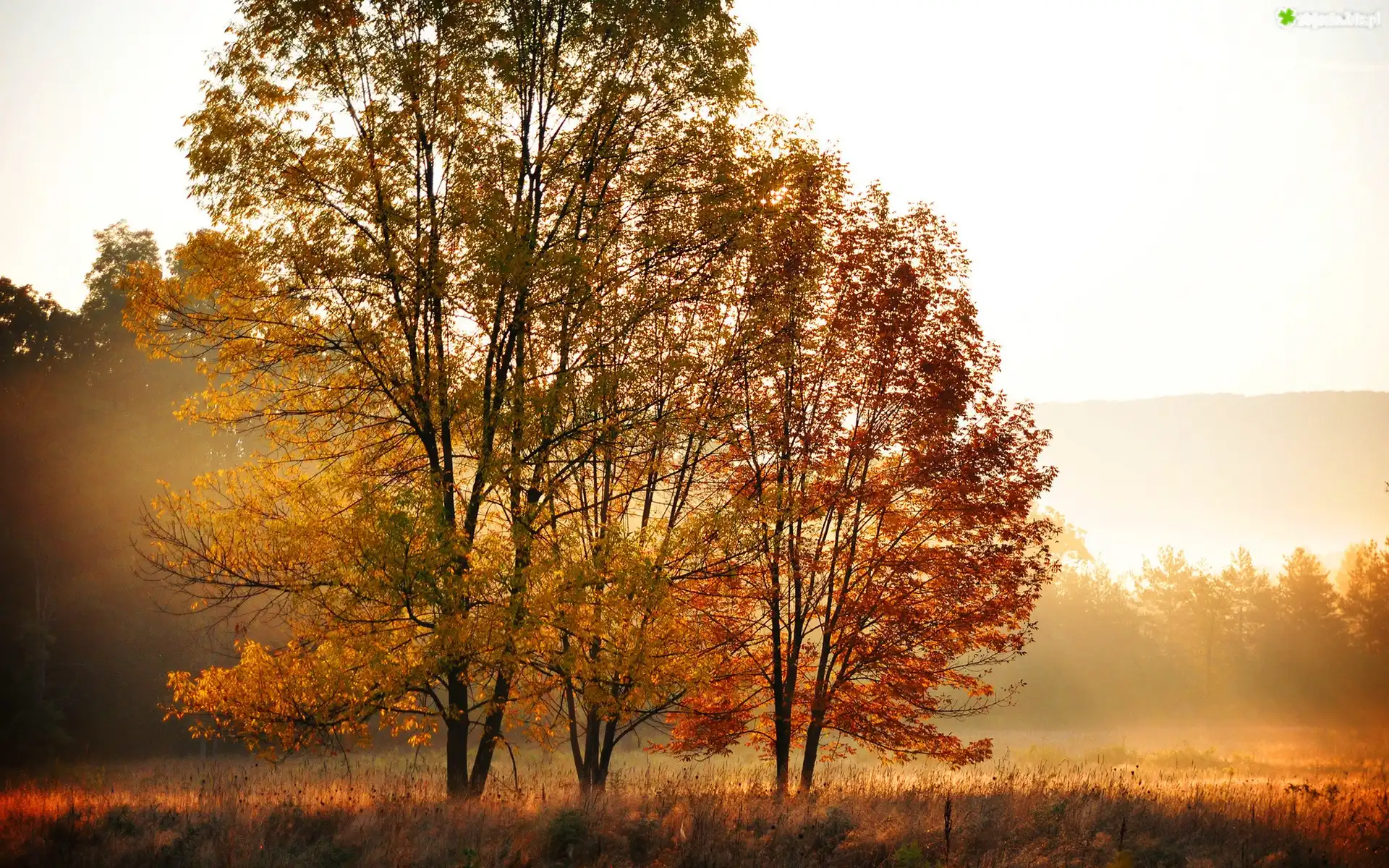 Zdjęcie Ląki, Lasy, Przebijające, Światło, Jesień