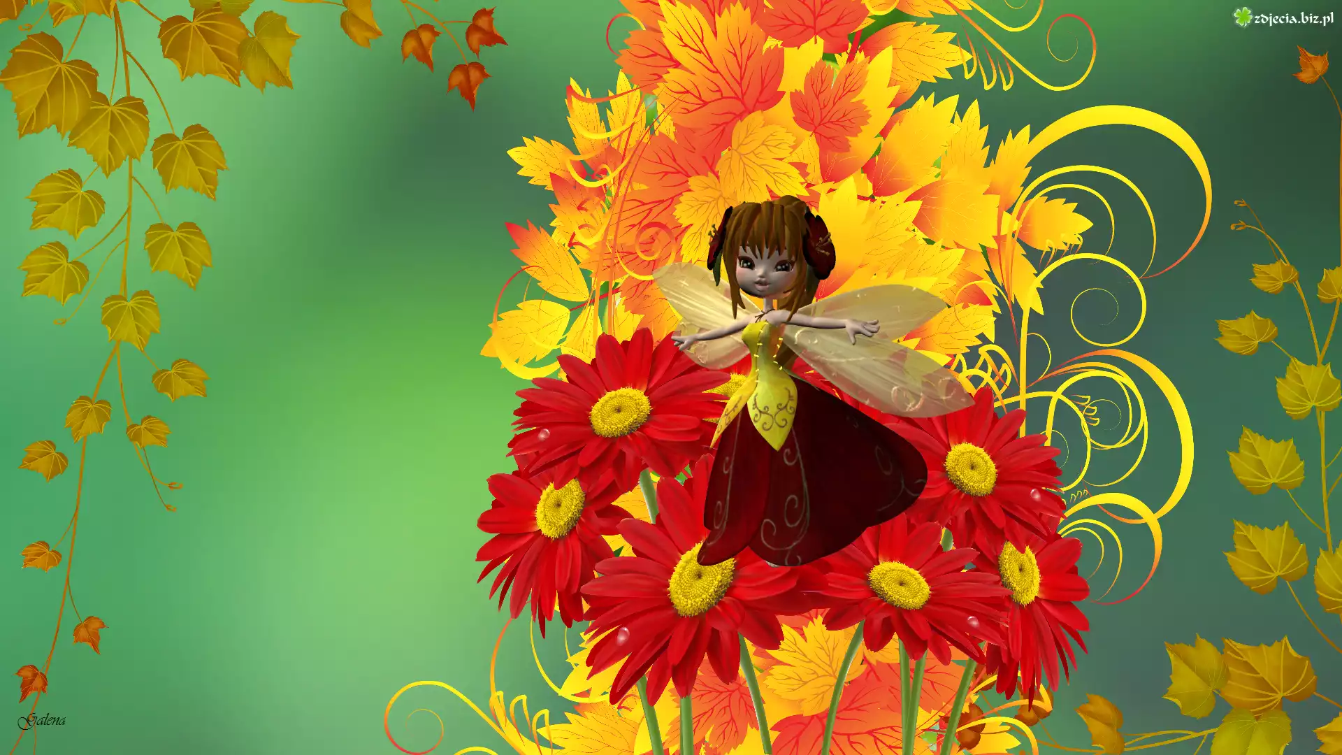 Zdjęcie Laleczka, Liście, Kwiaty, Jesień, Grafika