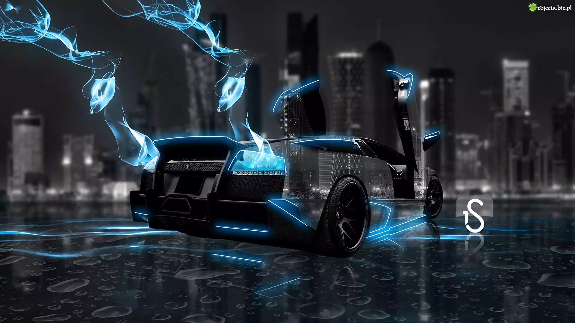 Zdjęcie, Czarny, Lamborghini Murcielago, Noc, Miasto, Grafika