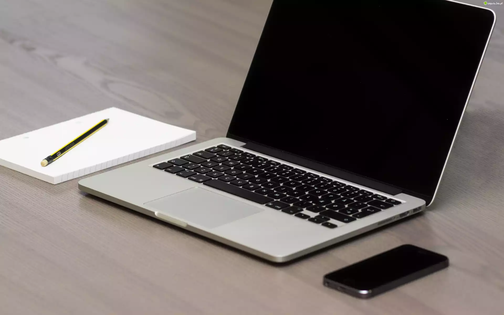 Zdjęcie Laptop, Telefon, Apple, Iphone, Notatnik