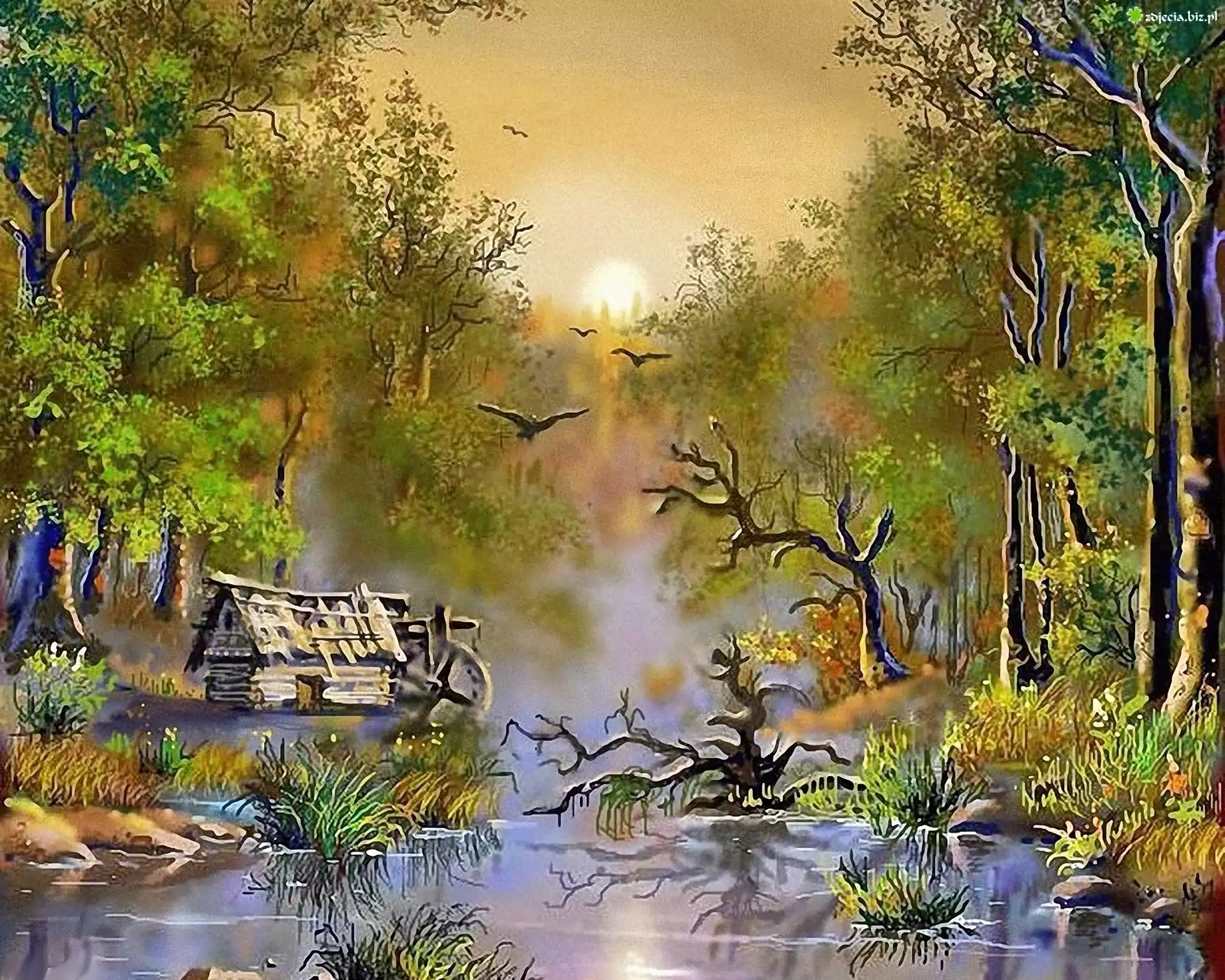 Leśna, Rzeka, Zima Kobieta, Łódka, Pies, Jezioro Zima, Padający, Śnieg, Las Twarz, Kobiety, Zwierzęta, Josephine Wall Las, Drzewa, Mokradła Serenity, Kobieta, Luis Royo Kładka, Przez, Bagno, Zachodzące, Słońce Las, Strumyk Zima, Las, Zachód, Słońca, Domek Bagna, Las Zima, Las Bagno, Drzewa, Trawa Chmury, Morze, Plaża, Reprodukcja Bagna, Mokradła, Mgła, Drzewa
