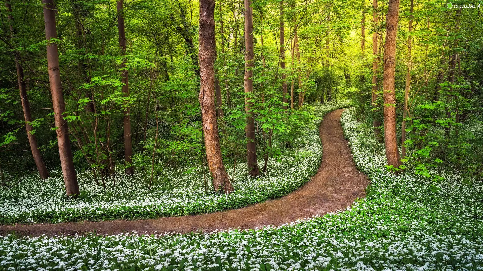 Zdjęcie Las, Ścieżka, Białe, Kwiatki