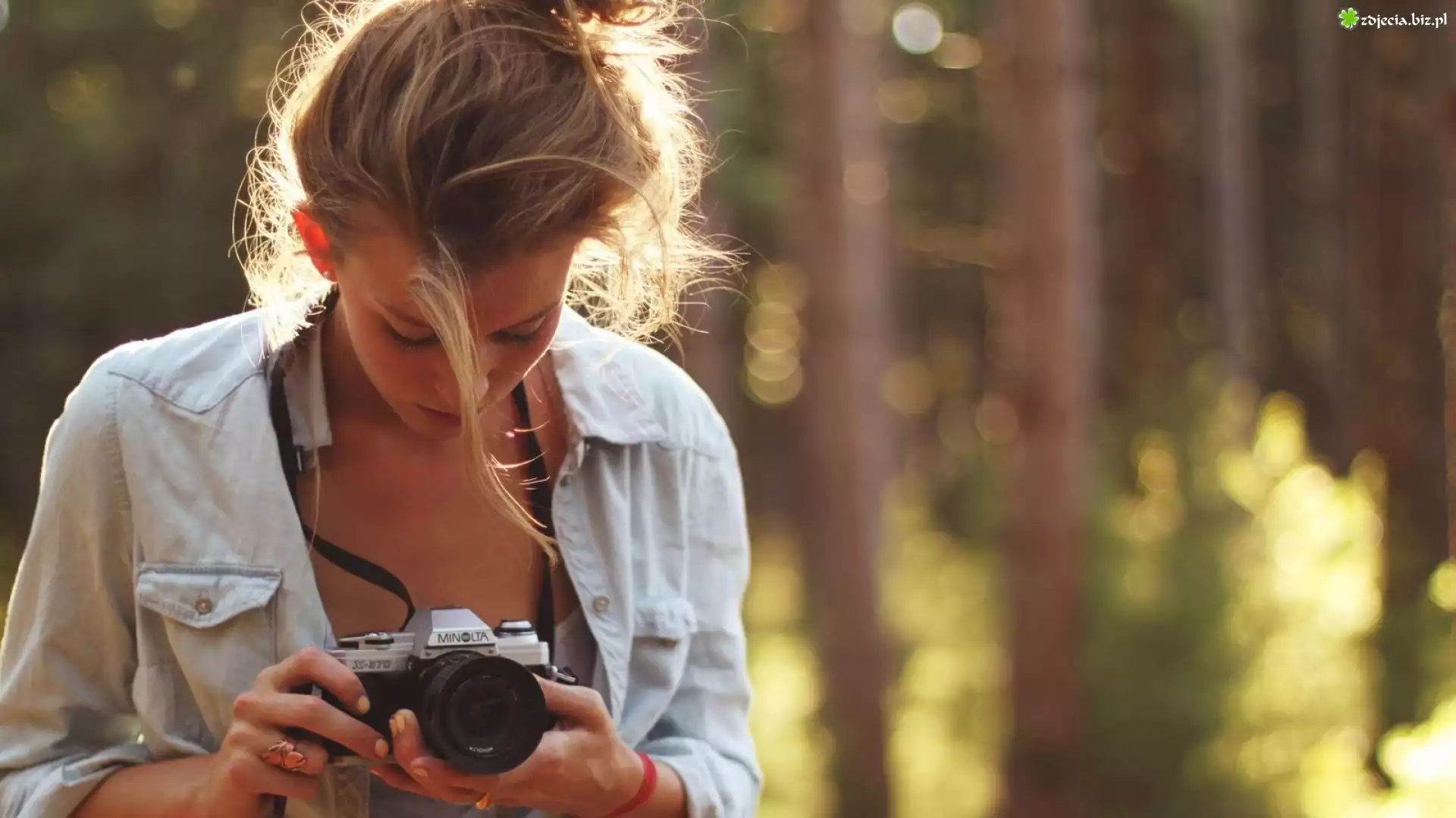 Zdjęcie Blondynka, Las, Aparat