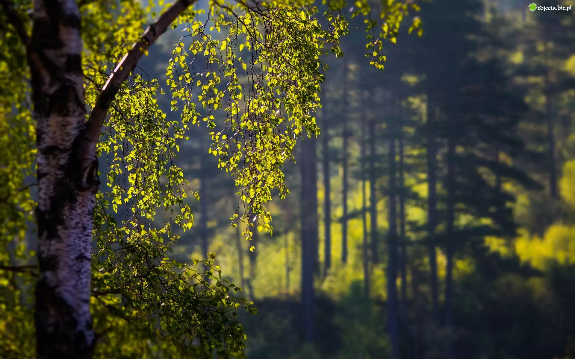 Zdjęcie Las, Drzewo, Brzoza, Światło