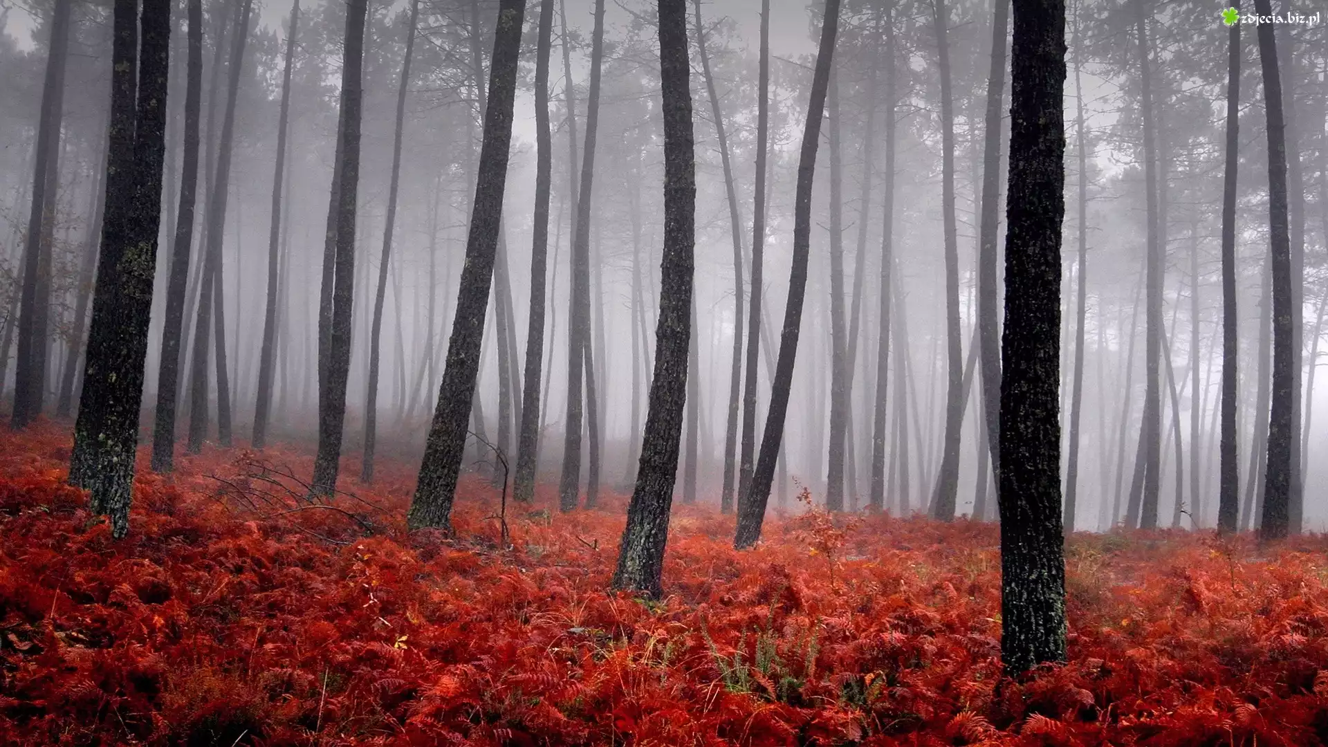 Zdjęcie Las, Jesienią, Czerwone, Runo