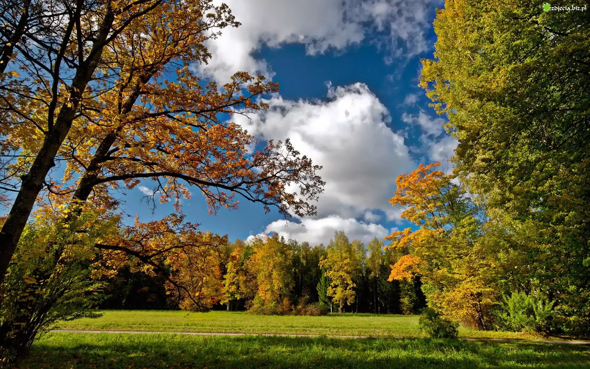 Zdjęcie, Las, Łąka, Droga, Chmury